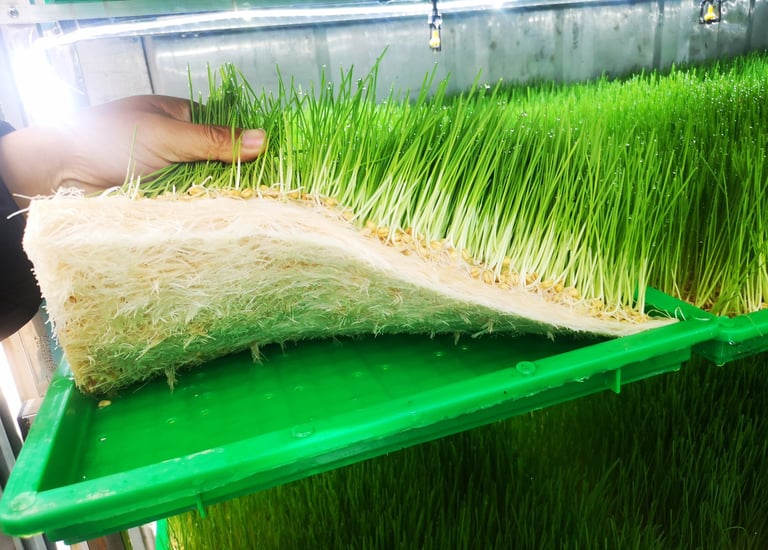 La coltivazione idroponica consente di produrre erba fresca di alta qualità, ricca di nutrienti e priva di pesticidi.